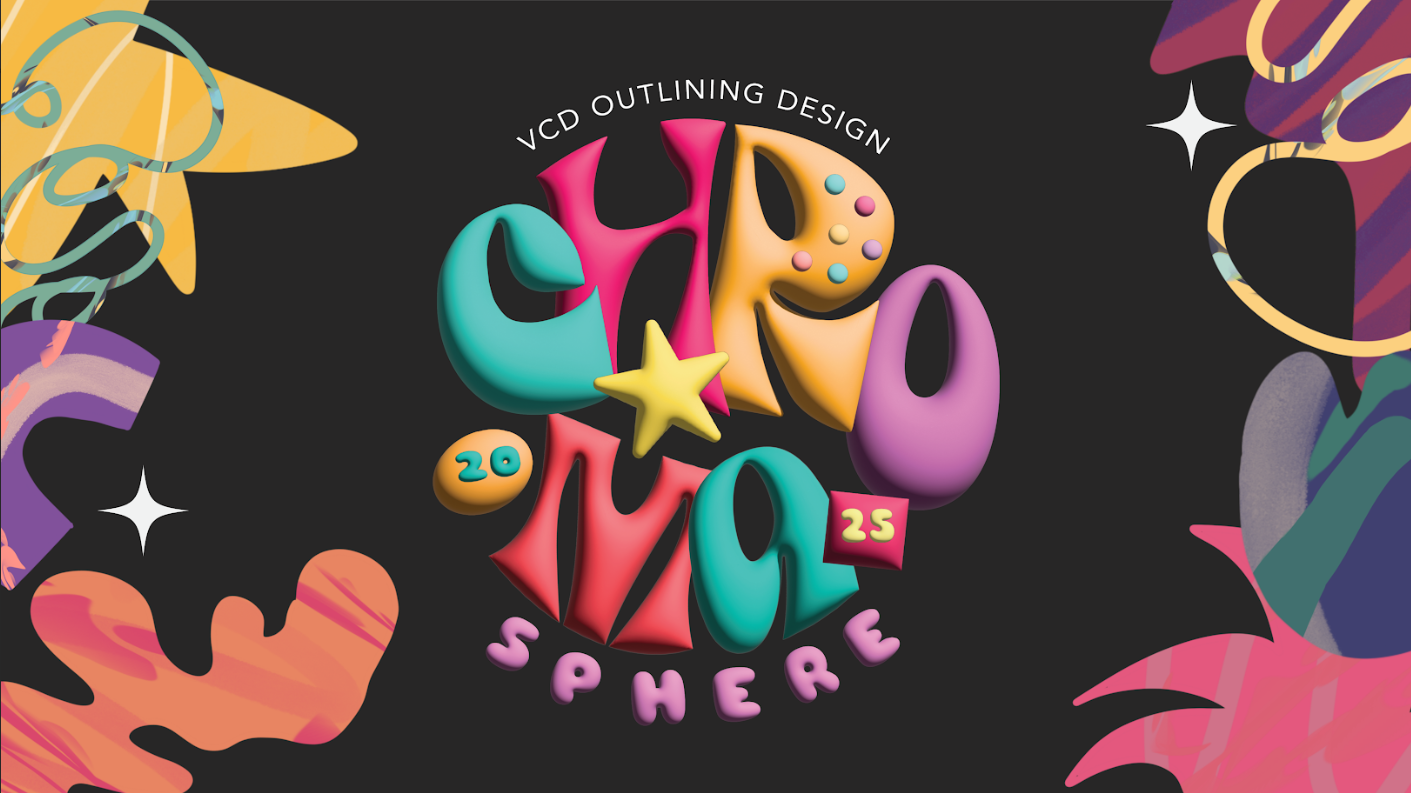 The Chromasphere theme for the 2025 outlining design concept represents a creative world that emerges from the combination of primary colors, which then develop into various new colors, symbolizing exploration, innovation, and freedom of expression in the world of design. This concept is highly relevant to Visual Communication Design (VCD) students, who are encouraged to step out of their comfort zones and create new ideas through visual experimentation with color and form. The use of bright colors such as turquoise, coral, yellow, violet, and pink also emphasizes the values of playfulness, optimism, harmony, and fantasy, which form the visual identity of the VCD-themed outlining design event.